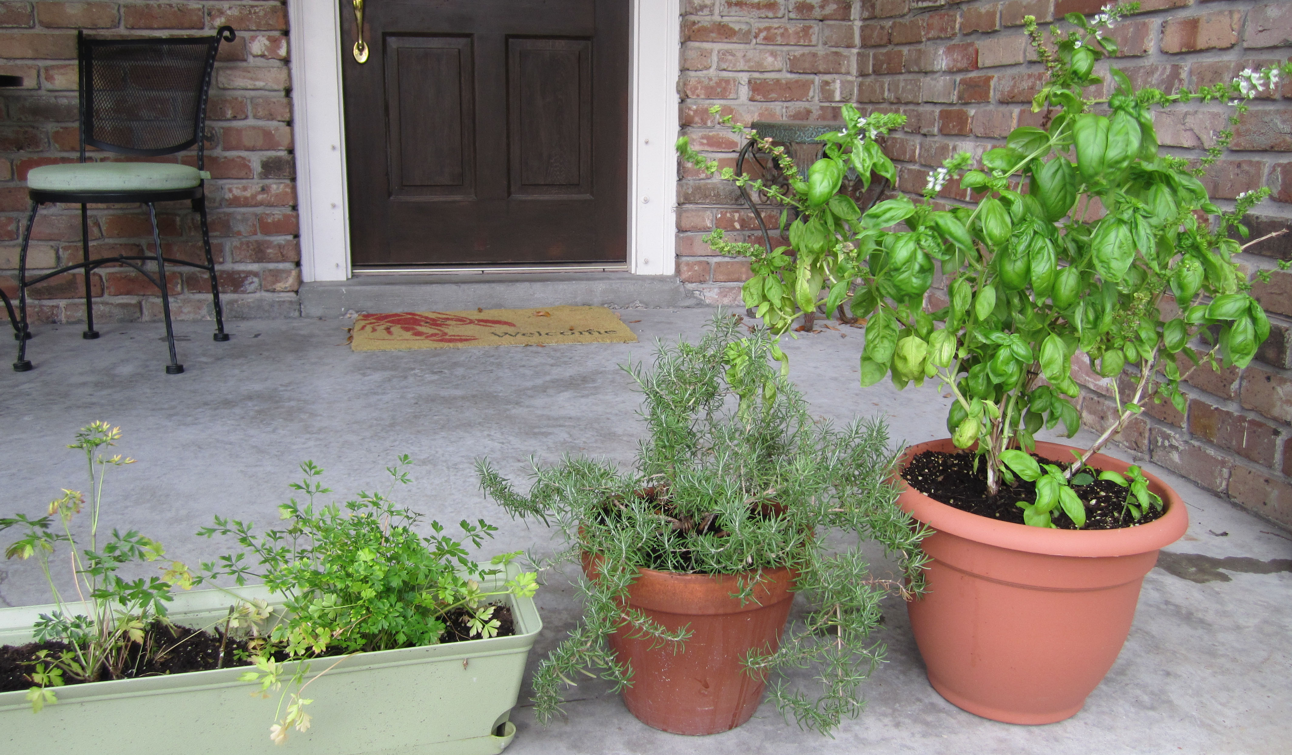 The Basil loves the humidity in New Orleans and the frequent rainfall. It requires a lot of sunlight and plenty of water. It also is important for the Basil to have good drainage.